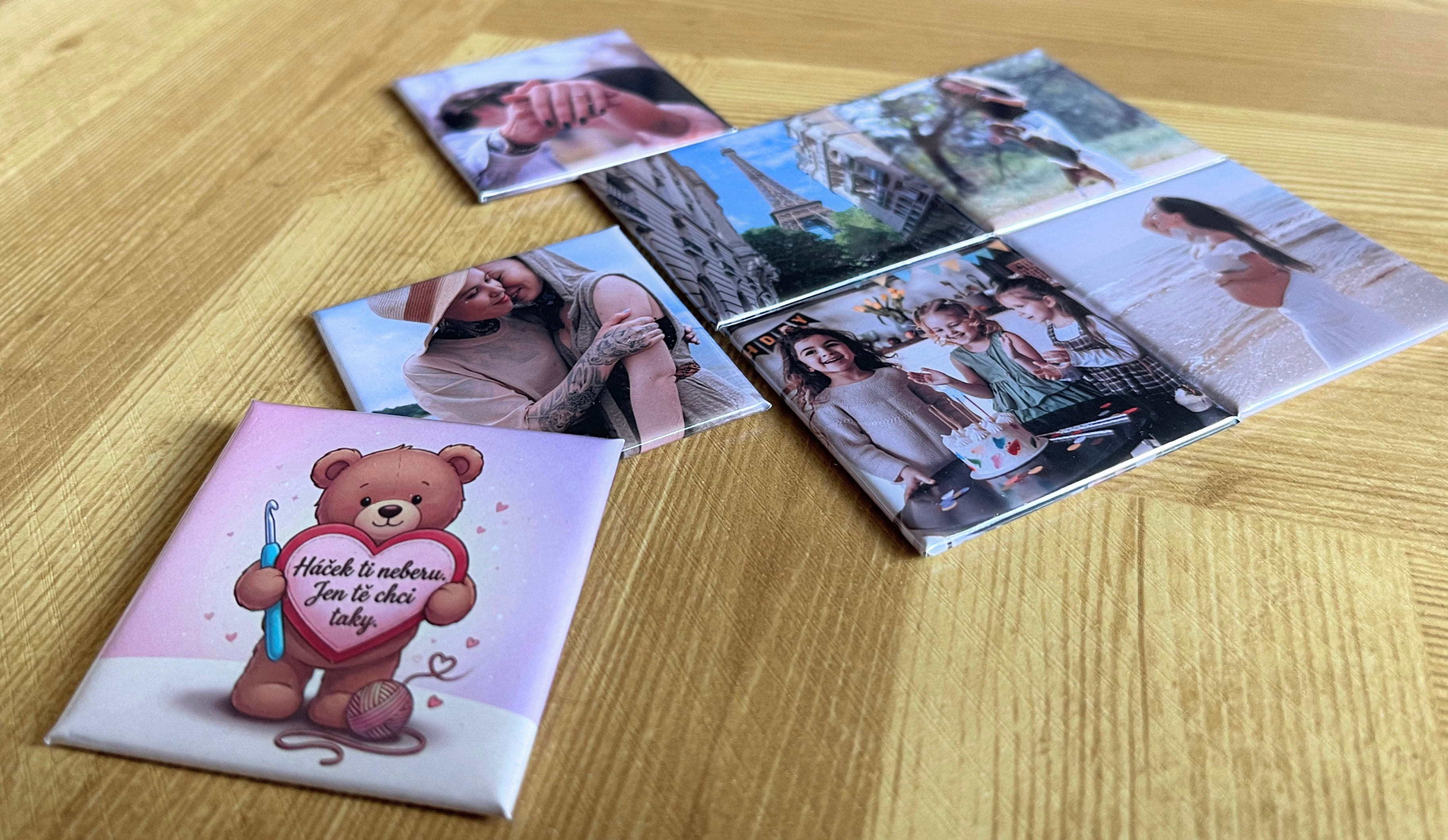 Ručně vyráběná fotomagnetka 50×50 mm z vaší fotky. Lesklý povrch, syté barvy a vzpomínky, které máte každý den na očích.